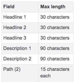 CAPTION: The character limits for Google Ads and Microsoft Ads text ads.