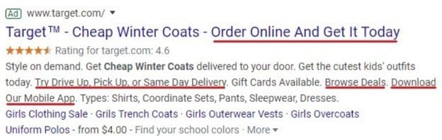 Nothing is more attractive to a potential buyer than savings. Use current sales in your headlines, descriptions, and ad extensions.