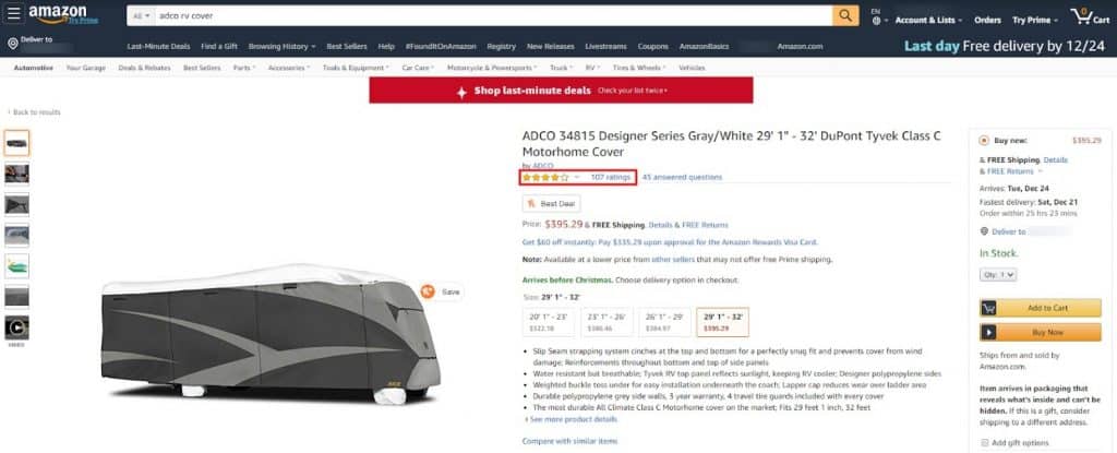 Amazon’s ratings refer to the one- to five-star ratings that consumers can leave after they purchase a product. The stars are accompanied by the six other rating and review elements shown below.
