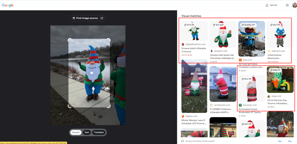 - Google Lens: the Google Lens feature allows users to click the Lens icon and bring up other similar products.