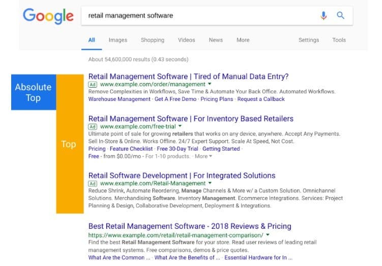 However, the first and second ad positions aren’t always placed at the top of the page. The ad in the first position could have been shown at the bottom of the page, below organic results. Average position didn’t really give advertisers clear insight as to where ads appeared on the page, so Google killed it.
