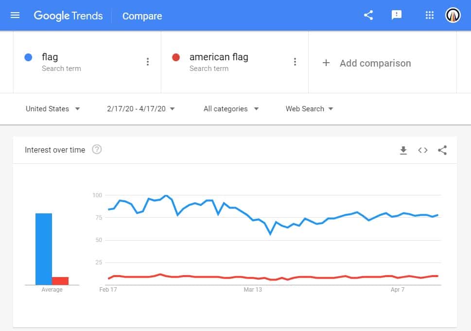 A Google Trends search for “flag” and “American flag”