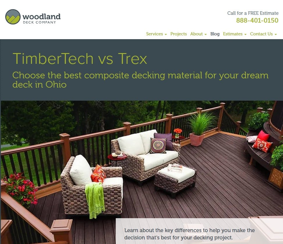 For example, local deck builder Woodland Deck, shown above, uses its blog as a way to answer questions its customers have. It’s both a timesaver – because customers with questions can be sent a quick link to a post – and a traffic driver.
