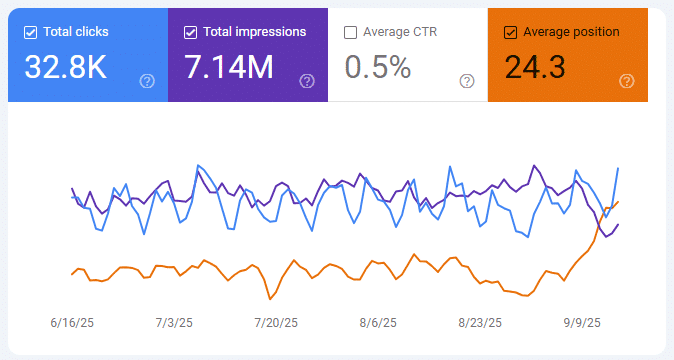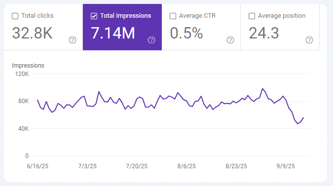 Anyone looking in Google Search Console this week has seen a concerning trendline: dramatically decreased impressions starting around September 10, as seen below. But wait, it’s not you, it’s Google. And it might be a better picture than you think.
