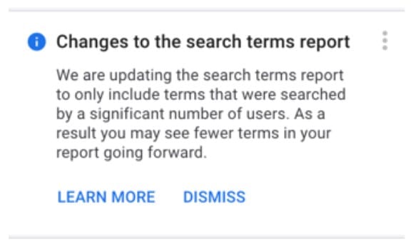 This means that, when reviewing search term reports beginning with September 2020, you’re seeing less useful data with decreased visibility into the actual search queries driving clicks, cost, and yes, even conversions!