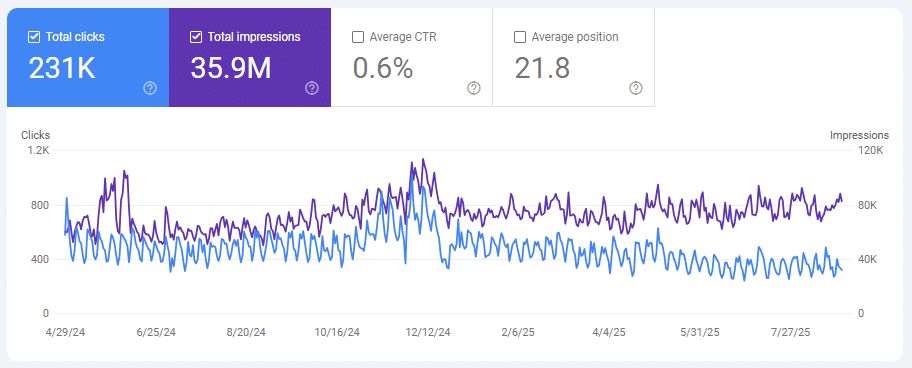Sites that drive traffic for more informational search queries, especially those that lean heavily on their blogs, tips, resources, or other informational content, are seeing stronger decouplings. Check your Google Search Console performance report’s 16-month trendline to see if your site is being impacted.